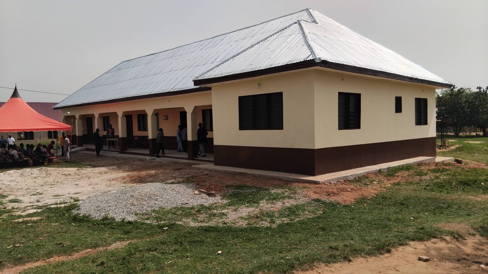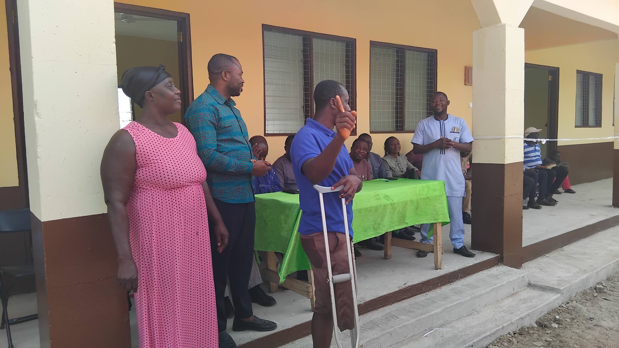 The District Chief Executive, Hon. Samuel Somuah, alongside a delegation of District Officials and Department Heads, today commissioned two completed educational infrastructure projects; a 3-unit classroom block with ancillary facilities for the Jeduako Methodist JHS, a project initiated in 2016 and a 20-seater water closet boys toilet facility for the Beposo Ghana Muslim Mission SHS which begun in 2024.